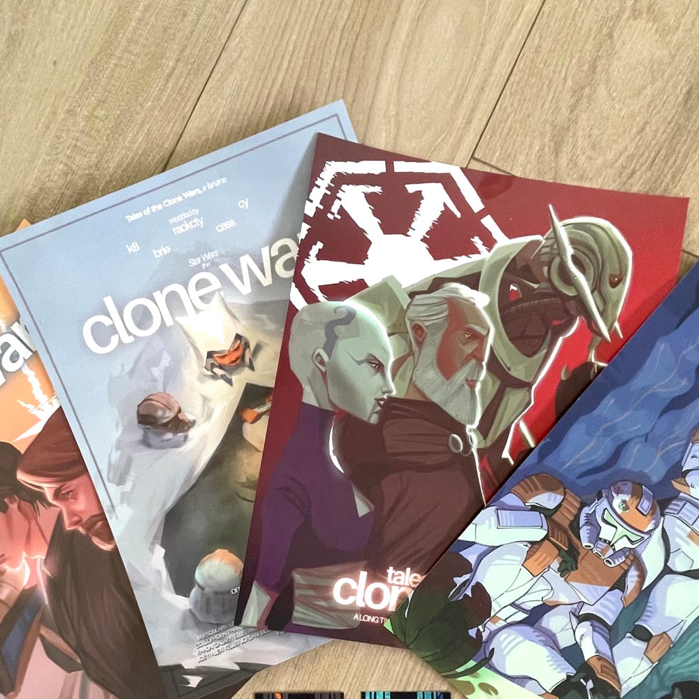 8.5x11" Print: Ahsoka S7 8.5x11" Print: TCW Heros 8.5x11" Print: TCW Villians 8.5x11" Print: 212th Waxer & Boil 2x6" Bookmark: Satine & Bo Katan